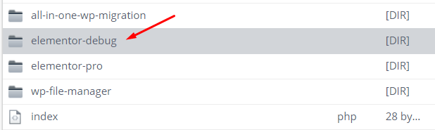 - По очереди переименовываем папки с плагинами, как мы это делали с папкой /plugins/. Например, переименовываем папку /elementor/ в /elementor-debug/.